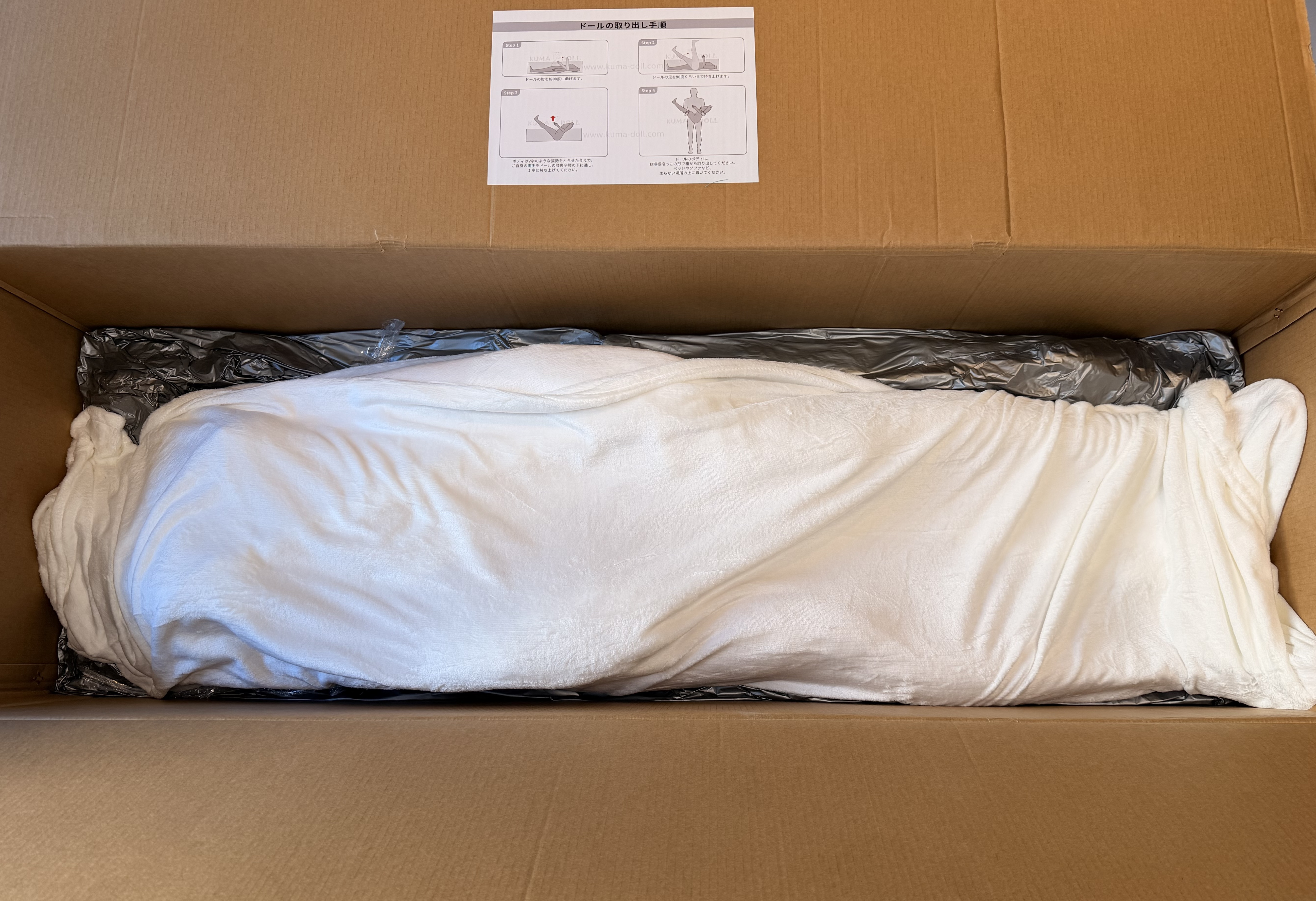 本体は 白いフランネル毛布 に包まれていて清潔感があります。